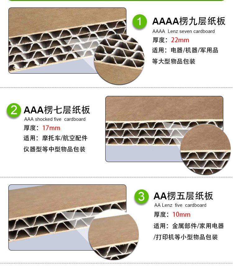 目前市場上常用的高強(qiáng)度瓦楞紙箱有AAA坑,AA坑,作為大型機(jī)器設(shè)備,機(jī)箱機(jī)柜,重量貨物的包裝材料,被世界上很多國家和企業(yè)慢慢接受并推廣,并得到了很高的評價及信賴。