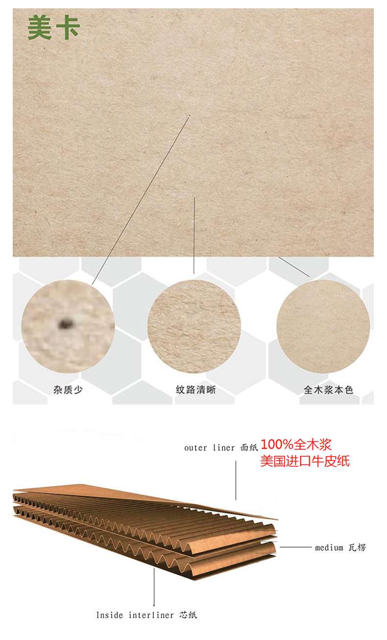美卡紙箱與普通紙箱有一定的區別,它們從顏色上看,美卡紙箱的顏色較深,見光變色。纖維方面,美卡紙箱的纖維較長。使用的木漿來看,美卡紙箱采用的木漿達90以上。